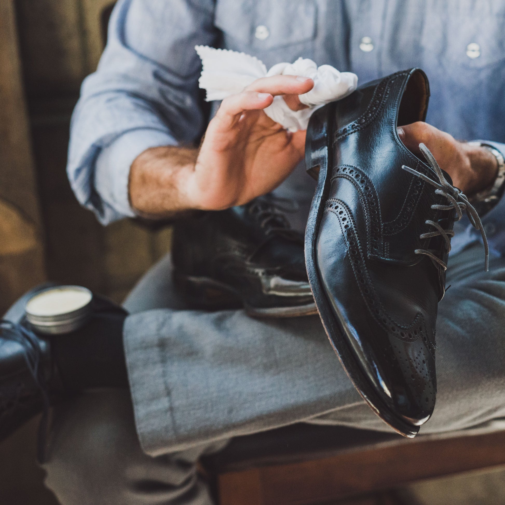 The ultimate shining leather shoe polish wax that is used to build up and finish the shine on toes and heels of all non-suede/non-patent leather shoes and boots.